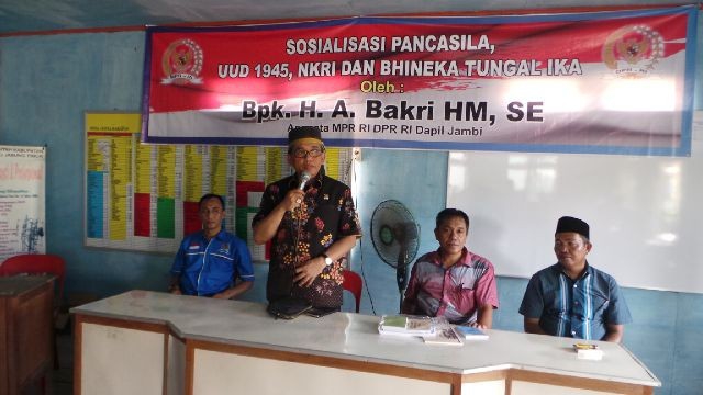 SuaraJambi.com, TANJAB TIMUR - Sibuk menjalankan tugas sebagai wakil rakyat di DPR RI bukan menjadi penghalang bagi H.Bakri untuk menemui konstituennya dalam wikayah Provinsi Jambi, kali ini dia turun ke daerah pemilihan guna mengsosialisasikan 4 Pilar Kebangsaan.